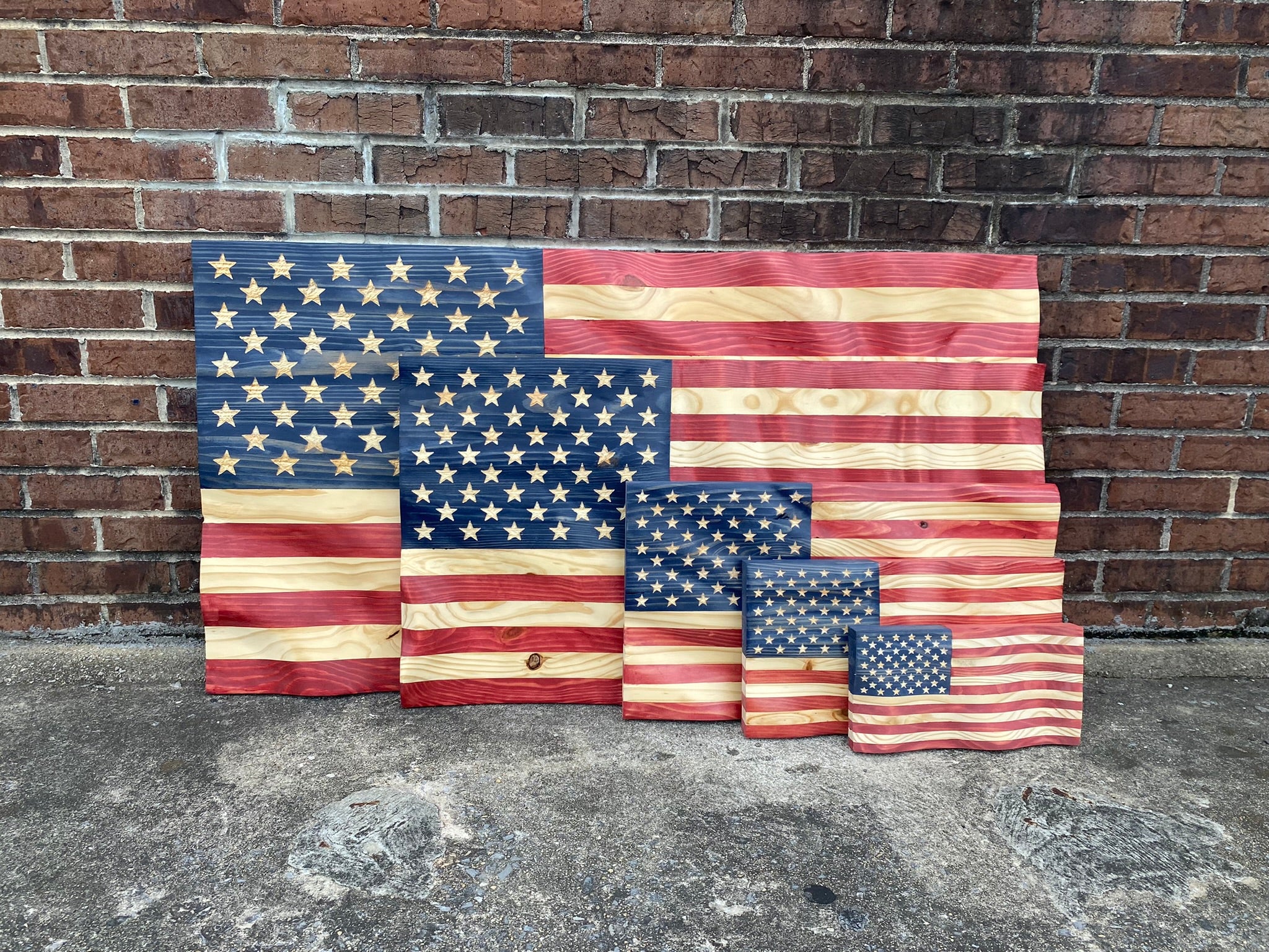 Handcrafted Waving Wooden 45/47 Flag – Rustic Patriotic Wall Art Decoration