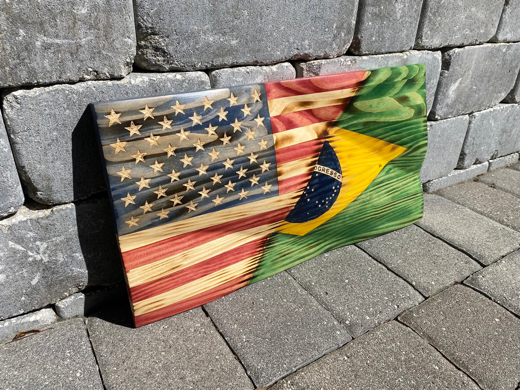 Handcrafted Burnt Waving Wooden 45/47 Flag – Rustic Patriotic Wall Art Decoration