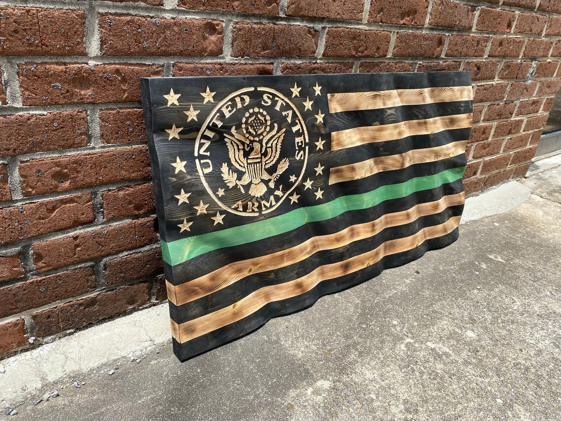 Crafted from solid wood, this rustic wall art is a perfect way to show your patriotic spirit. The wooden flag is designed to appear to wave gently when placed on the wall, giving it a realistic, eye-catching look. With its natural, vintage look, it creates a warm and inviting atmosphere in any room.