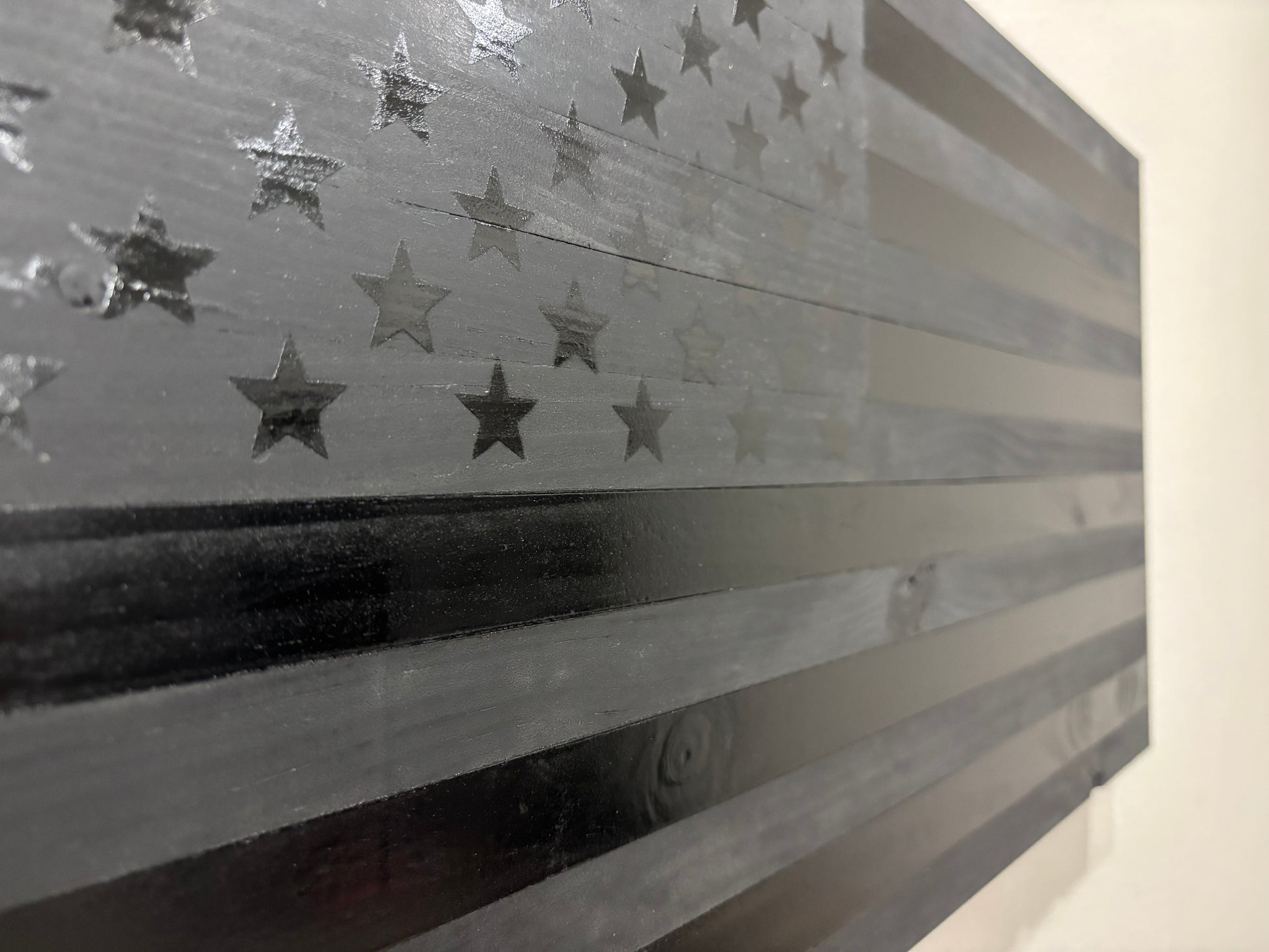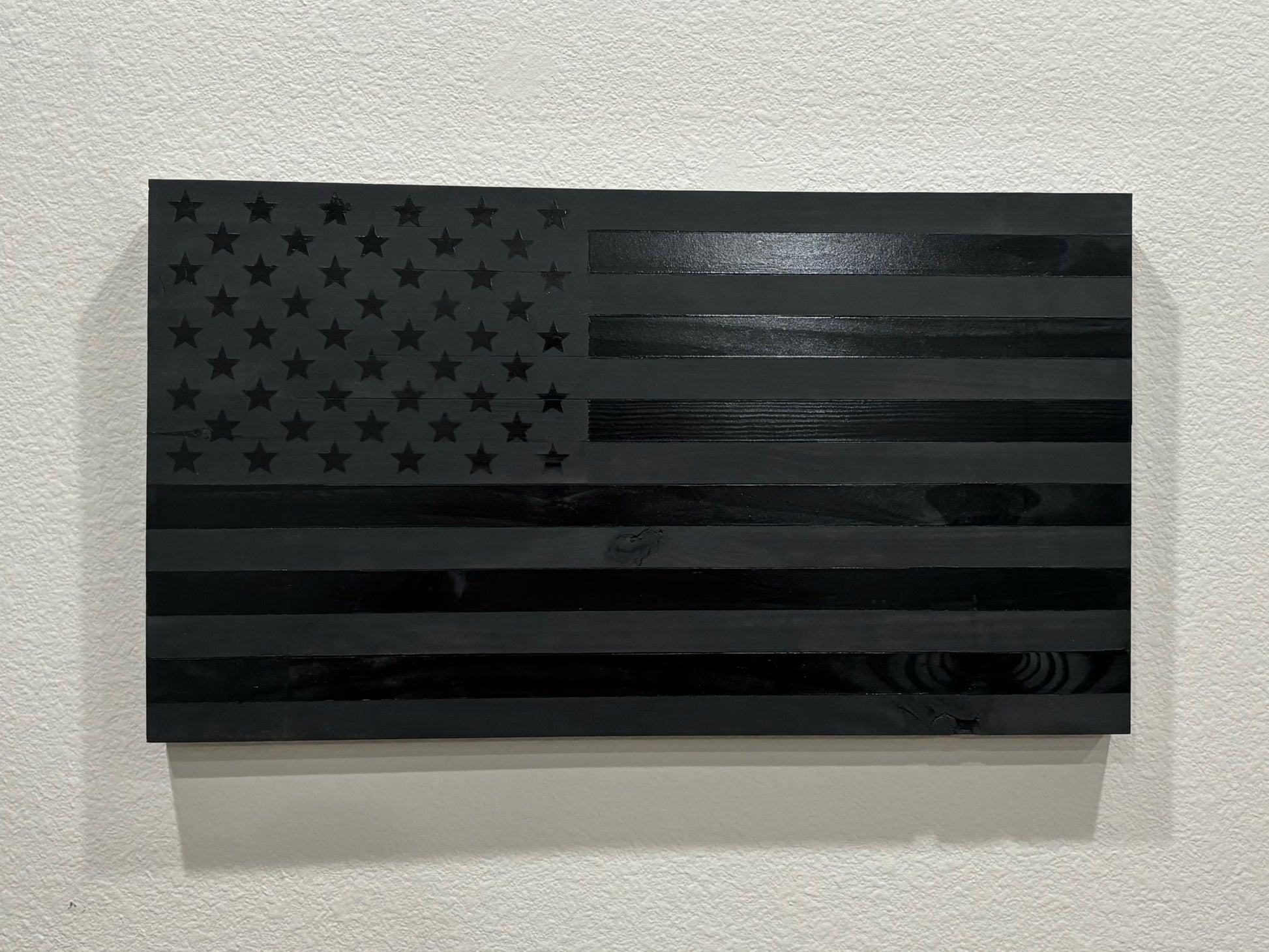 Handcrafted Flat Wooden Blacked Out American Flag – Modern Patriotic Wall Art