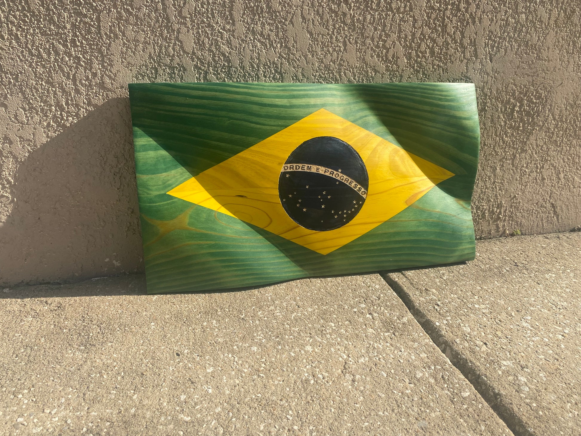 This is our Waving Wooden Flag of Brazil design. We have an ever growing lineup of flags up on our catalog now.
