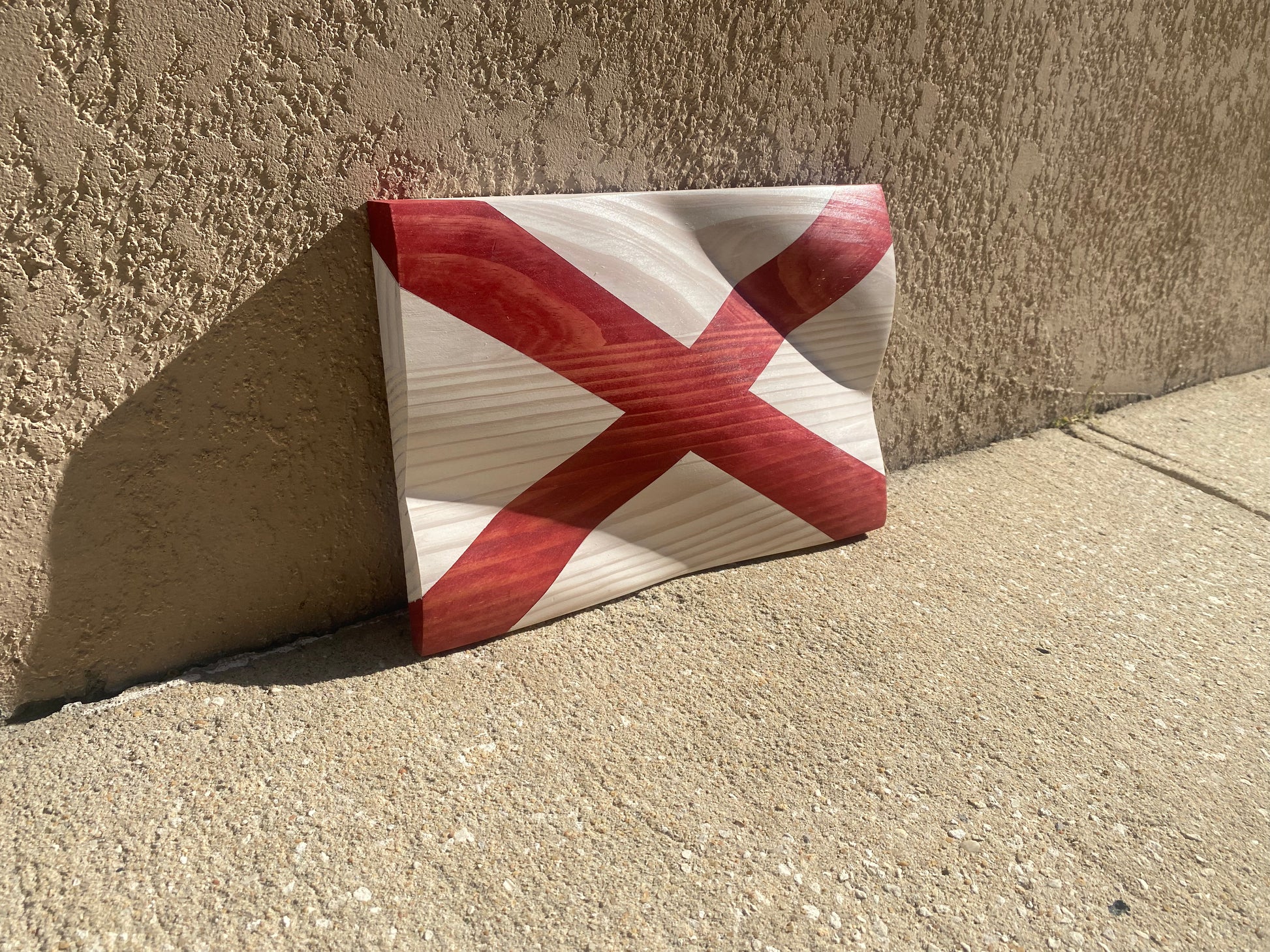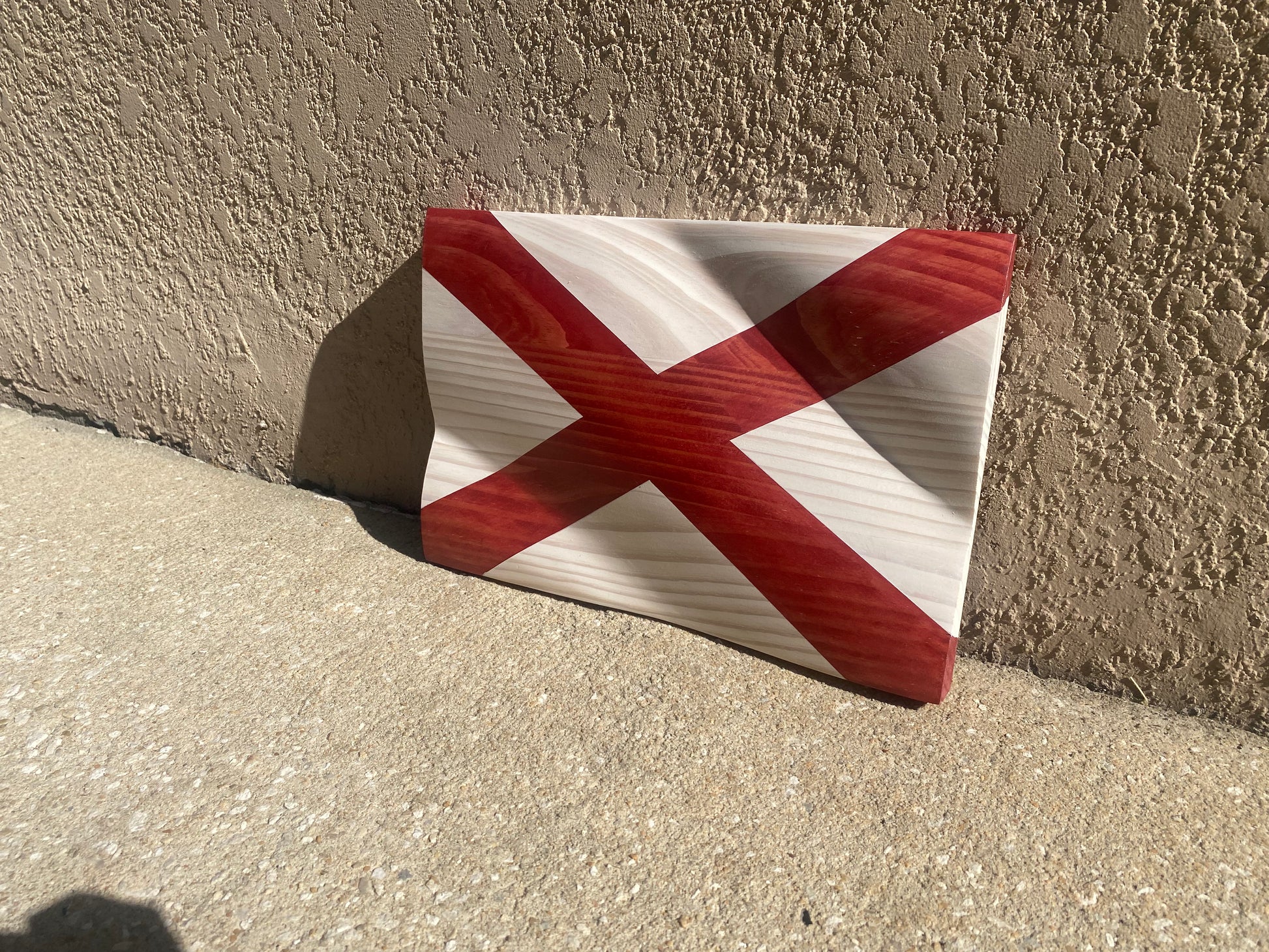 This is our Waving Wooden State of Alabama Flag design. We have an ever growing lineup of flags up on our catalog now.